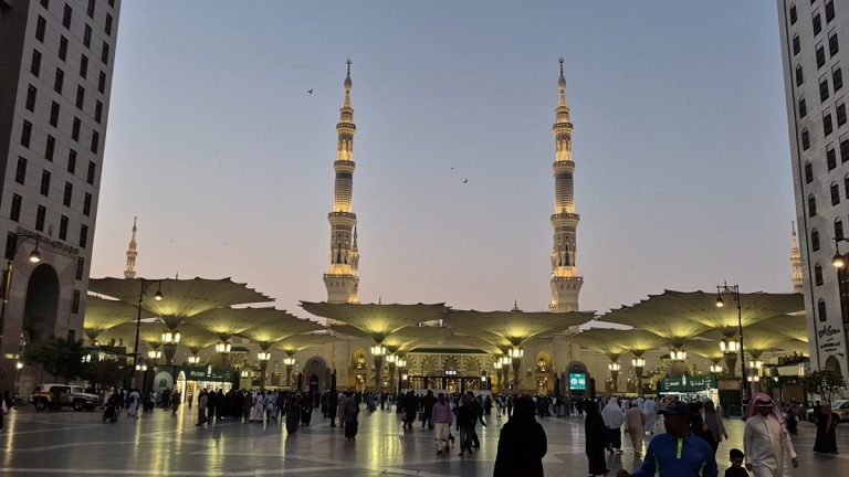 MADINAH – Musim dingin di Madinah selalu tiba dengan cara yang tidak tergesa-gesa. Angin dingin menyelinap dari utara, melewati bukit-bukit gersang yang memagari kota, lalu masuk ke jalan-jalan sempit yang dipenuhi peziarah. Sejuknya udara Madinah di bulan November membawa ketenangan yang khas, seolah mengundang setiap orang untuk melangkah pelan, bernapas dalam, dan merasakan kedamaian kota Nabi dengan lebih utuh.