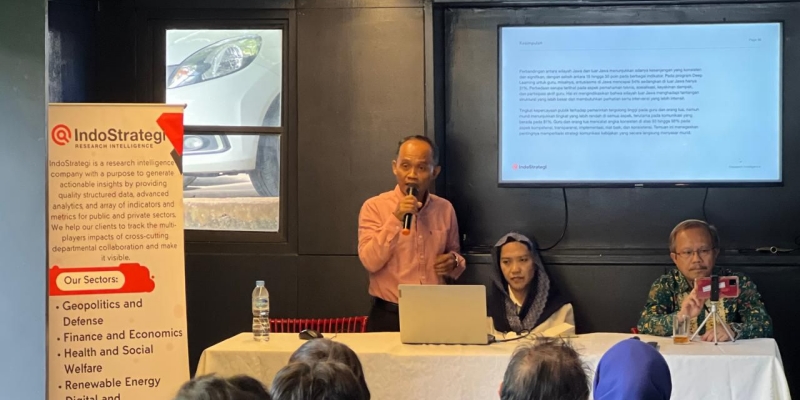 Evaluasi IndoStrategi juga menemukan ketimpangan antara Jawa dan luar Jawa, dengan selisih hingga 20-30 poin.
