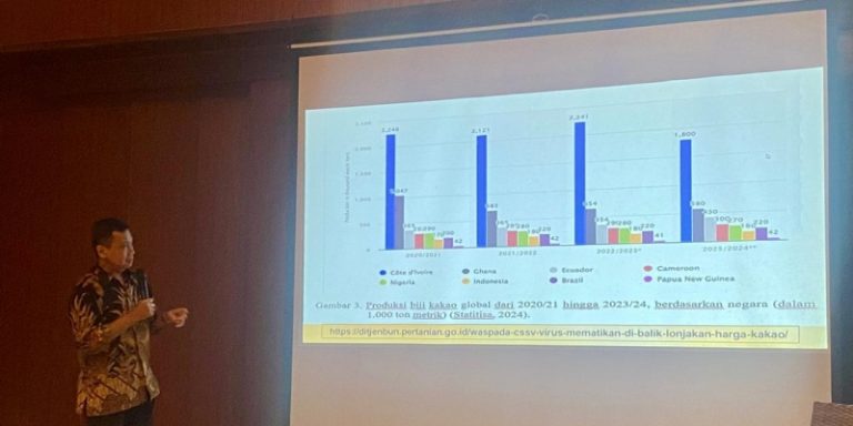 “Areal dan produksi terus menurun,” ujarnya dalam acara Kunjungan Kerja Media: Kontribusi Kakao untuk APBN & Perekonomian Nasional di Bali, pada Senin, 24 November 2025.