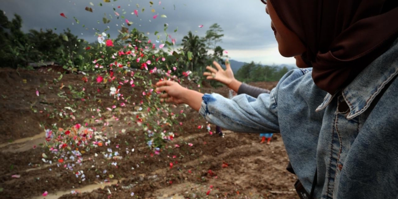Keluarga korban dan seluruh personel yang bertugas dalam operasi SAR menaburkan bunga sebagai penghormatan terakhir kepada 11 warga yang tidak berhasil ditemukan atas bencana longsor di Desa Pandanarum, Kecamatan Pandanarum, Kabupaten Banjanegara, Jawa Tengah, Selasa, 25 November 2025. Operasi SAR resmi ditutup hari ini setelah 10 hari upaya pencarian. (Foto: Dokumentasi BNPB)