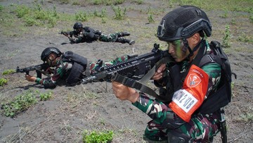 TNI menyiapkan prajurit dari Korps Pasukan Gerak Cepat (Kopasgat) untuk pengamanan bandara kawasan PT Indonesia Morowali Industrial Park (IMIP), Morowali, Sulawesi Tengah.