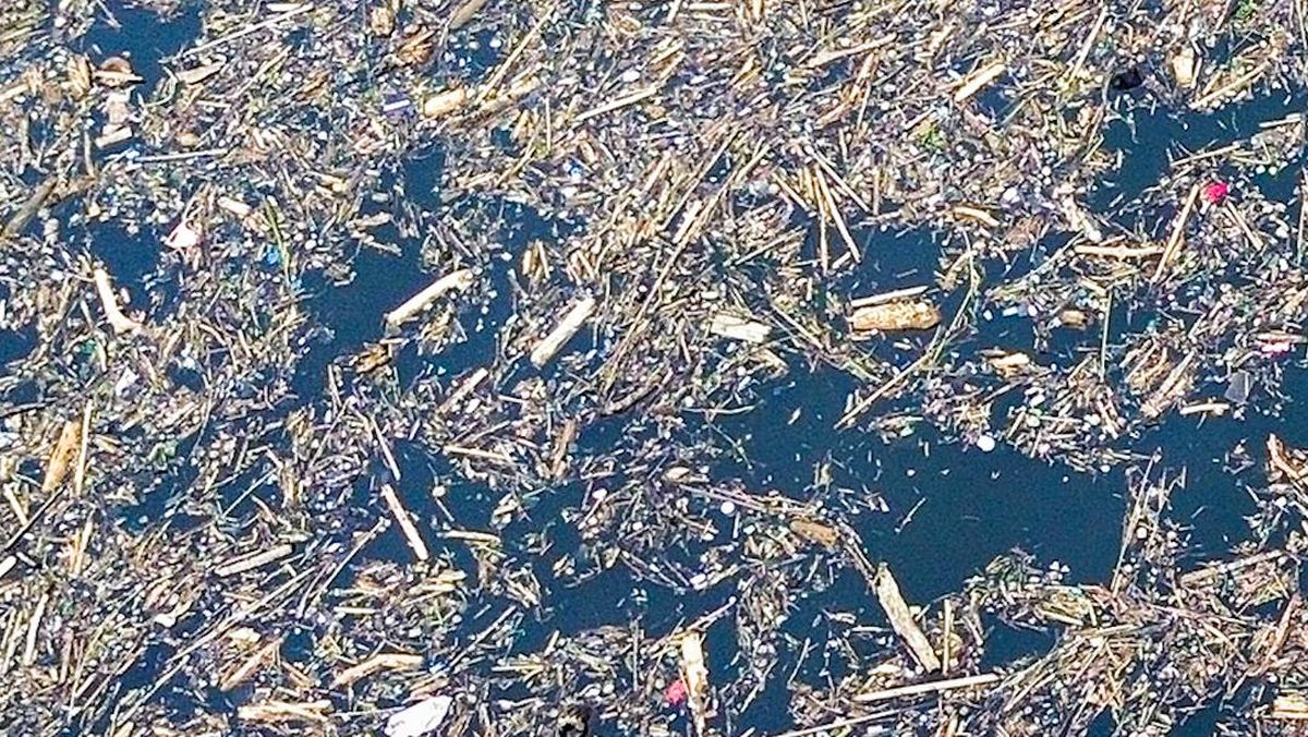 Foto udara sampah dari kayu gelondongan yang hanyut di danau Singkarak di Nagari Muaro Pingai, Kabupaten Solok, Sumatera Barat, Minggu (30/11).