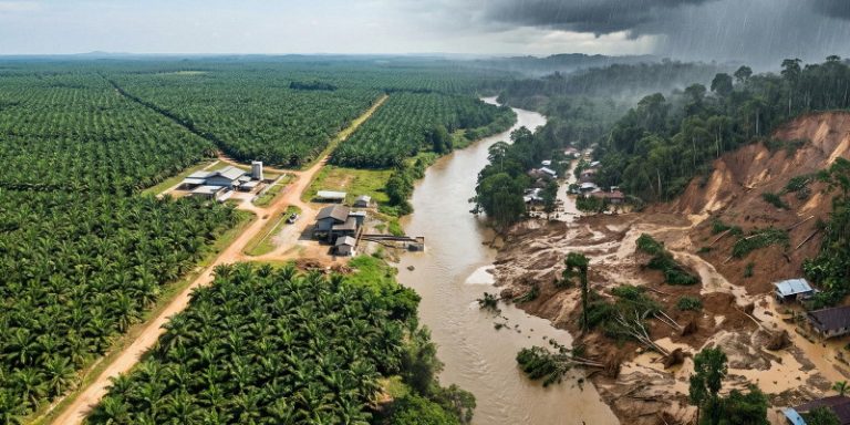 Penggantian hutan alami dengan perkebunan sawit menyebabkan penurunan drastis keanekaragaman hayati, mengganggu keseimbangan ekosistem dan memicu konflik satwa.
