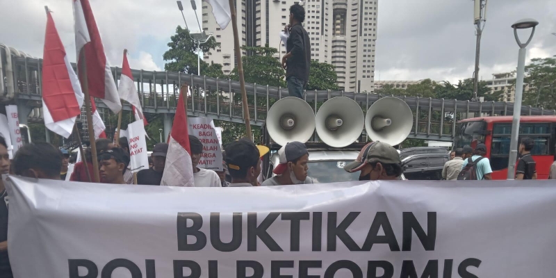 “Kerugian korban diperkirakan mencapai kurang lebih Rp362 miliar. Itu bukan uang yang sedikit, itu uang yang banyak,” teriak orator di atas mobil komando.