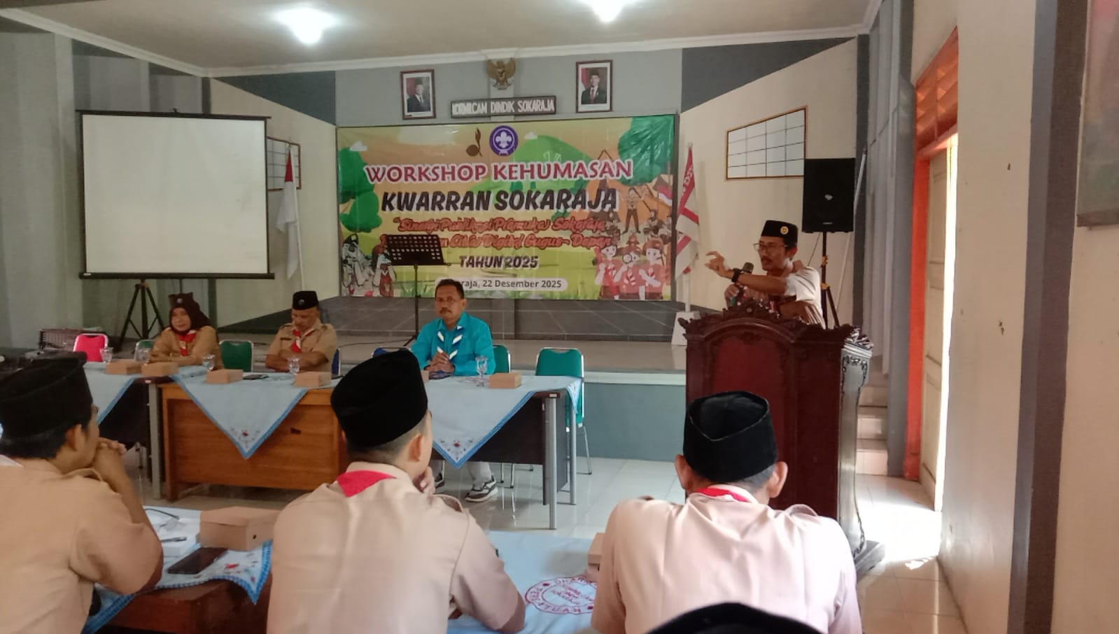 Gerakan Pramuka Kwartir Ranting (Kwarran) Sokaraja menyelenggarakan Workshop Kehumasan dengan tema “Sinergi Publikasi Pramuka Sokaraja Membangun Citra Digital Gugus Depan Tahun 2025”. Kegiatan ini dilaksanakan pada Senin, 22 Desember 2025, bertempat di Aula Graha Wiyata Sokaraja, mulai pukul 07.30 hingga 11.30 WIB. Workshop ini menjadi bagian dari upaya strategis Kwarran Sokaraja dalam memperkuat peran kehumasan di era digital, khususnya dalam pengelolaan informasi dan publikasi kegiatan kepramukaan.