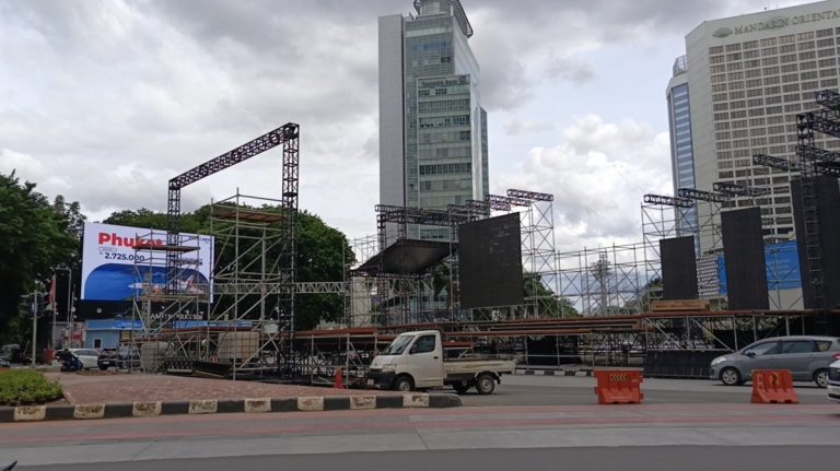 Salah satunya di Bundaran HI, Jakarta Pusat. Berdasarkan pantauan di lokasi, Sabtu (27/12/2025), di tempat tersebut tengah dibangun panggung untuk memeriahkan malam pergantian tahun.