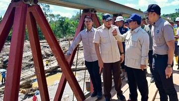 Presiden RI Prabowo Subianto meninjau pembangunan Jembatan Bailey Sungai Garoga di Kecamatan Batang Toru, Tapanuli Selatan, Rabu (31/12).