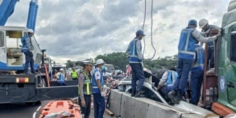Evakuasi 6 orang korban di kedua mobil sedan itu berlangsung sangat sulit, selama tujuh jam dan membuat macet di jalan tol sepanjang 3 kilometer.