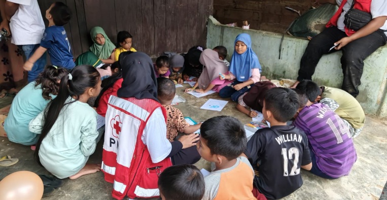 Di Gayo Lues, Tim Kemanusiaan PMI Kota Jakarta Utara masuk ke desa-desa untuk memberikan layanan kesehatan dan trauma healing.