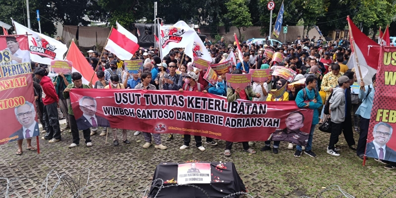 Dalam aksi teatrikal tersebut, massa membentangkan foto Febrie Adriansyah di atas keranda hitam sembari menaburkan bunga. Mereka menuntut transparansi atas posisi Jampidsus yang dinilai memiliki kewenangan luar biasa dalam menentukan arah penanganan perkara korupsi di tanah air.