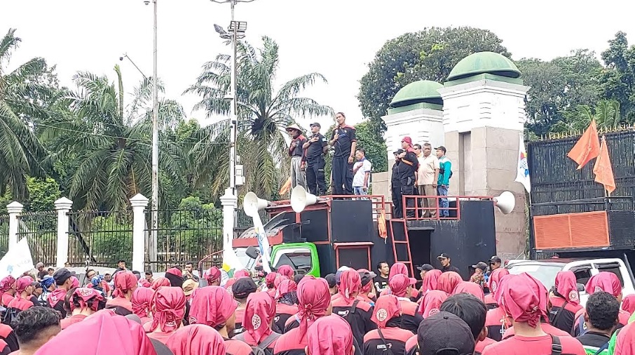 JAKARTA – Ribuan buruh mulai menggelar aksi unjuk rasa di depan Gedung DPR RI, Senayan, Jakarta, Kamis (15/1/2026) siang.  Massa dari berbagai elemen ini datang dengan membawa empat tuntutan utama ke Parlemen.