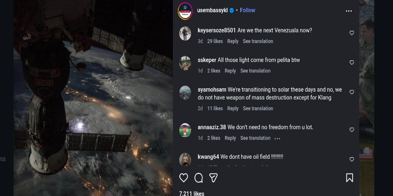 Di Instagram, foto yang sama memicu ratusan komentar, termasuk pertanyaan bernada bercanda: “Apakah kita Venezuela berikutnya?”