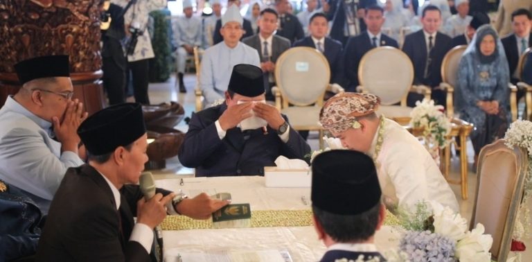 Dalam momen tersebut, Prabowo meneteskan air mata haru usai menyatakan kata “sah” saat Agung melafalkan ijab kabul dengan lantang dalam satu tarikan napas.