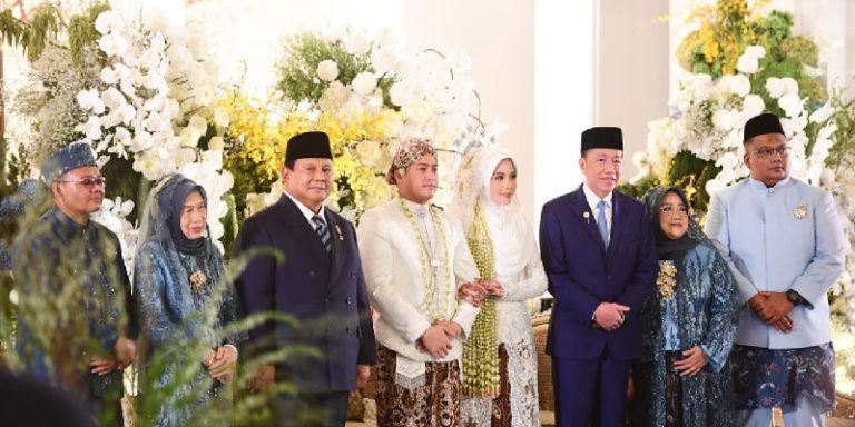 Prabowo menyatu dengan keseluruhan konsep pernikahan yang mengusung nuansa elegan dan sarat nilai budaya Jawa.