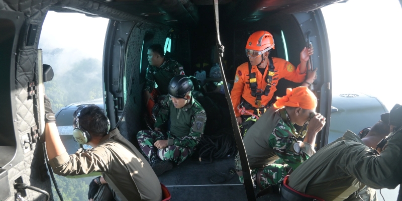 Tim SAR gabungan kini mengoptimalkan penggunaan pesawat dan helikopter untuk menjangkau lokasi pencarian pesawat ATR 42-500 rute Yogyakarta–Makassar yang sulit diakses melalui jalur darat. Pesawat tersebut dilaporkan hilang kontak di kawasan Puncak Bulusaraung, Kabupaten Maros–Pangkep, Sulawesi Selatan pada Sabtu 17 Januari 2026.(Foto: Dispenau)