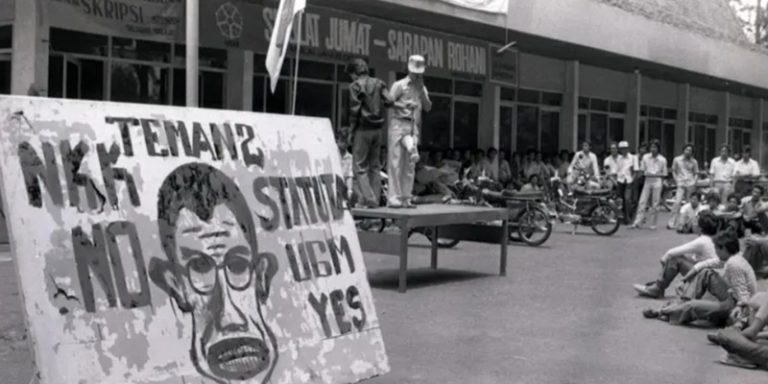 Kebijakan NKK/BKK: Pemerintah Orde Baru menerapkan kebijakan Normalisasi Kehidupan Kampus (NKK) dan Badan Koordinasi Kemahasiswaan (BKK) pada 1977-1978 untuk membungkam aktivitas politik mahasiswa di kampus.