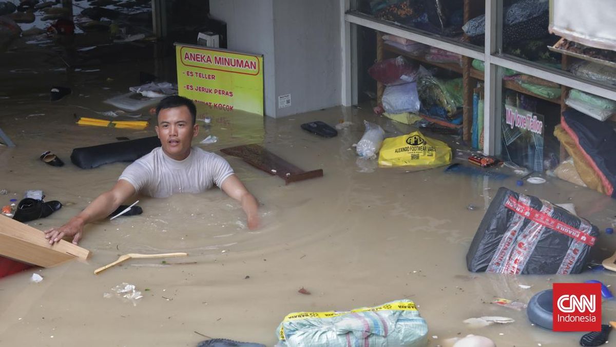 Dalam video yang diunggah akun TikTok @af***** bertanggal Rabu (23/1) itu, terlihat seorang warga merekam kondisi perumahan yang terendam air cokelat keruh. Air tampak mengalir kencang hingga menyeret tubuh perekam, membuatnya tidak bisa menginjak tanah dan terpaksa berenang untuk bertahan.