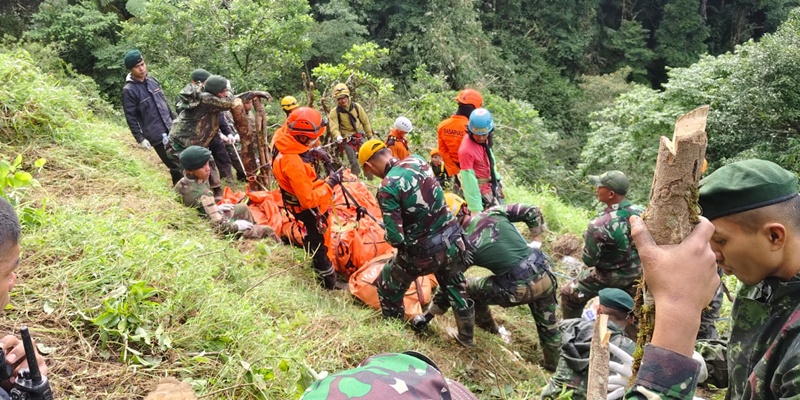Prajurit TNI bersama Tim SAR Gabungan berhasil menemukan dua jenazah korban terakhir jatuhnya pesawat ATR 42-500 di kawasan Gunung Bulusaraung, Kabupaten Pangkep, Sulawesi Selatan dengan menembus medan dan cuaca ekstrem. Dengan ditemukannya dua korban terakhir, total keseluruhan korban jatuhnya pesawat ATR 42-500 yang berhasil ditemukan berjumlah sepuluh jenazah. (Foto: Puspen TNI)