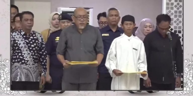 “Kesatu, Pegawai Negeri Sipil yang namanya tersebut di bawah ini, Ferry Irawan, 11 Februari 1985. Pangkat Golongan Ruang Penata Muda Tingkat 1, III/b. Jabatan Analis Kapal Pengawas. Unit Kerja Direktorat Pengendalian Operasi Armada. Telah meninggal pada 17 Januari 2026 Karena menjalankan tugas jabatan dan atau tugas kedinasan lainnya di luar lingkungan kerja. Dan diberikan kenaikan pangkat anumerta dengan pangkat golongan dari Penata Muda Tk I, III/b menjadi Penata III/c,” sambung protokoler.