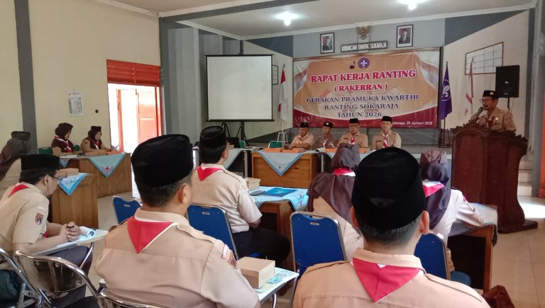 Rapat Kerja Ranting (Rakerran) Gerakan Pramuka Kwartir Ranting Sokaraja Tahun 2026 dilaksanakan pada Kamis, 29 Januari 2025 bertempat di Aula Graha Wiyata Sokaraja . Kegiatan ini diikuti sekitar 120 peserta yang terdiri dari unsur Mabiran, pengurus Kwarran, para Mabigus, Ketua Gugus Depan, Pembina Pramuka, serta tamu undangan lainnya. Rakerran menjadi forum strategi tahunan untuk meluncurkan pelaksanaan pendidikan kepramukaan sekaligus merumuskan arah kebijakan dan program kerja ke depan.