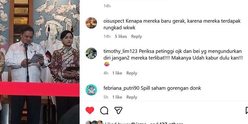 Dilansir dari akaun Instagram RMOL, Minggu malam, 1 Februari 2026, warganet menyesalkan mengapa baru sekarang pemerintah berupaya untuk menindak para penggoreng saham yang menyebabkan ekonomi makin terpuruk.