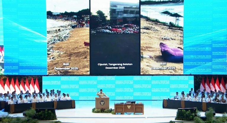 BOGOR — Presiden Prabowo Subianto memberi penekanan soal penanganan sampah di depan seluruh kepala daerah saat memberikan taklimat pada Rapat Koordinasi Nasional Pemerintah Pusat dan Daerah Tahun 2026 di Bogor, Jawa Barat, Senin 2 Februari 2026.