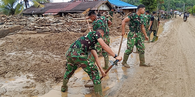 Di sektor konektivitas, prajurit TNI melaksanakan penimbunan dan perbaikan akses jalan Pandan–Tukka yang terputus akibat tergerus air bandang. TNI juga membuka kembali akses jalan yang tertutup material lumpur dan kayu di sepanjang ruas Pandan–Pinangsori sehingga mobilitas warga dan distribusi bantuan dapat kembali berjalan lancar.
